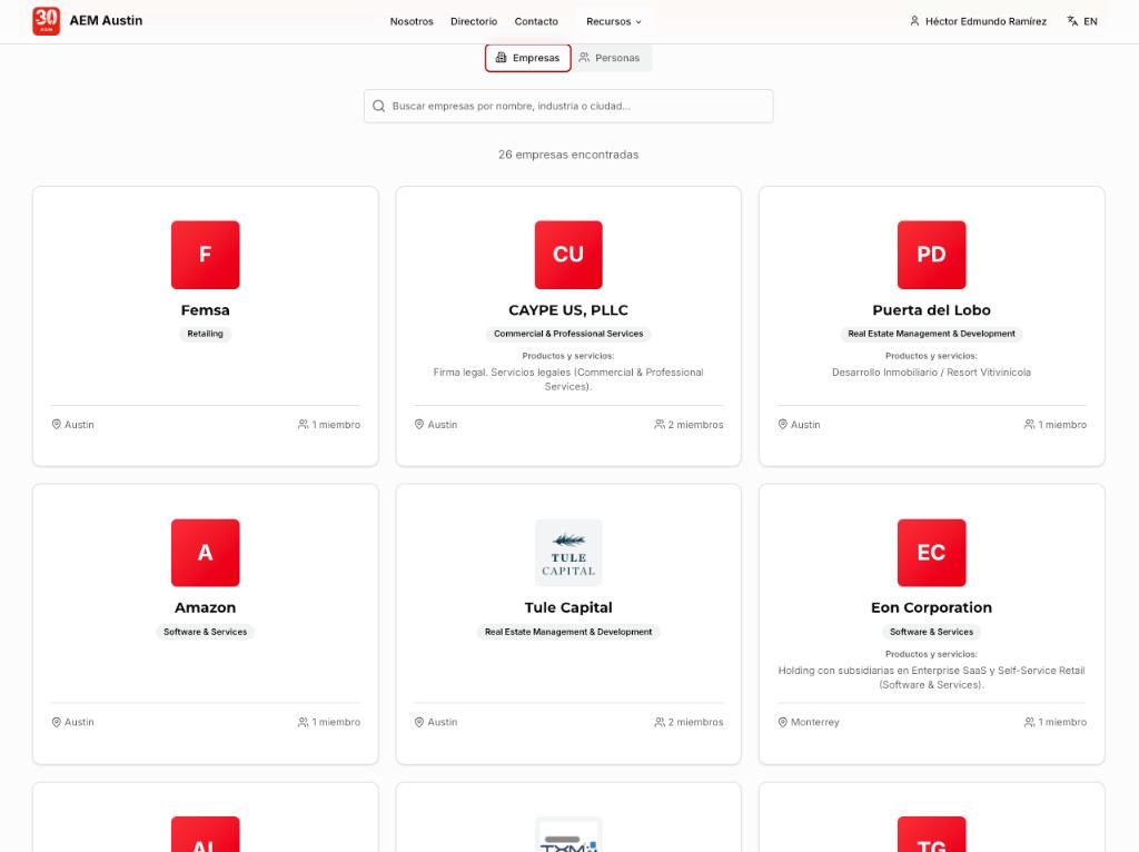 Nexus nació dentro del capítulo de Austin — no es una plataforma externa impuesta. Fue creada por un miembro del board que vivió los problemas de primera mano.